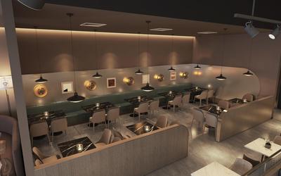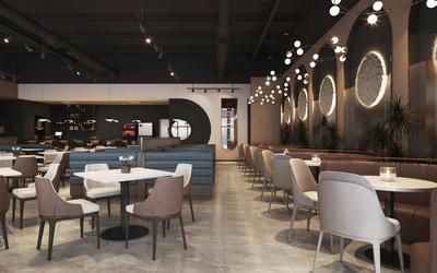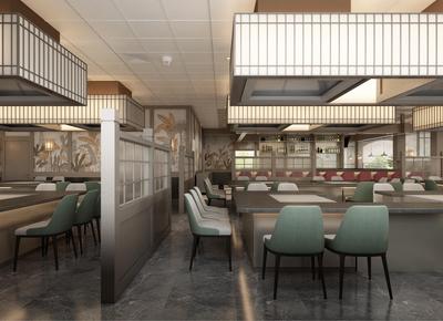 - Spatial Flow: The open floor plan, guided by clear circulation paths (as indicated by the gateway and zoning), ensures smooth movement while creating intimate nooks for solo diners or small groups.
